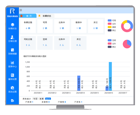 統計報表包括車輛費用統計表、車輛收入統計表、車輛利潤統計表、出車類統計表、油耗/電耗表、駕駛員補貼表、油卡電卡余額變動表、維保配件表等。